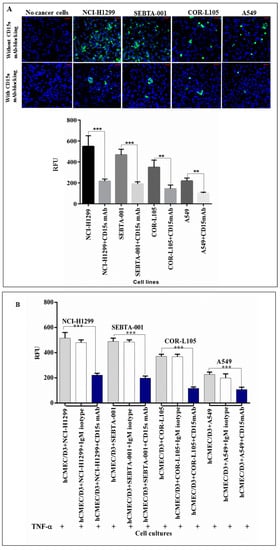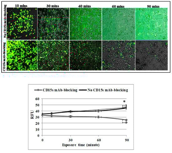 2.3. Immunoblocking of CD15s Reduced Adhesion of Cancer Cell–Brain Endothelium under Static Conditions