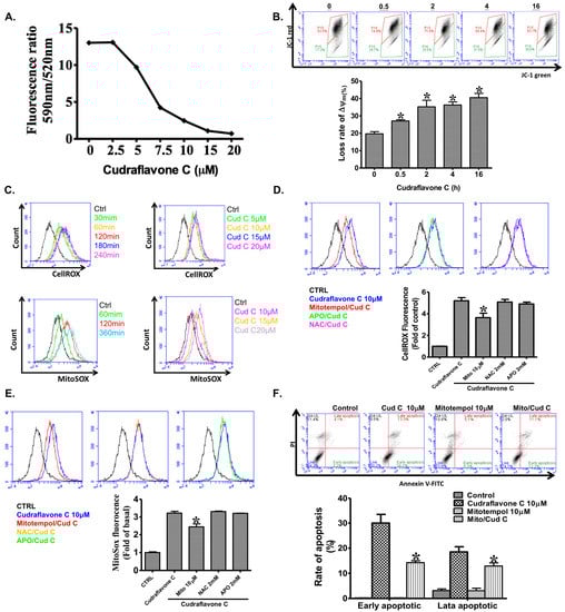 2.5. Cudraflavone C Promotes Apoptosis in A375.S2 Cells via Mitochondrial ROS Generation