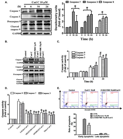 2.8. Cudraflavone C Induces the Activation of Caspase-3, Caspase-7, and Caspase-9 in A375.S2 Cells