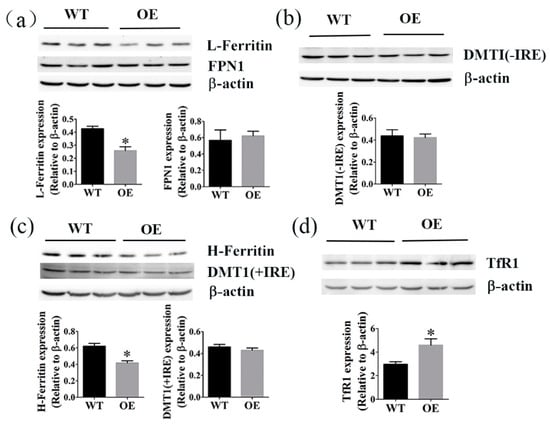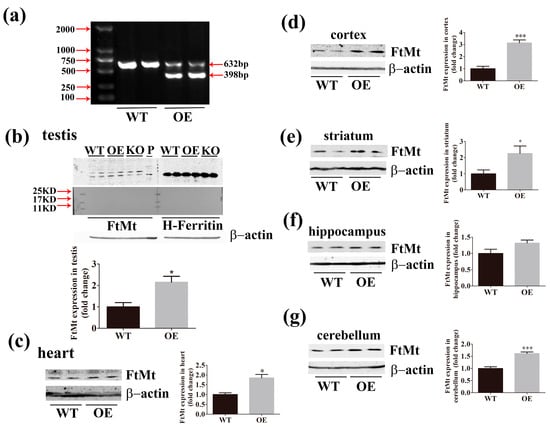 2.2. Expression of FtMt is Increased in the Transgenic Mice