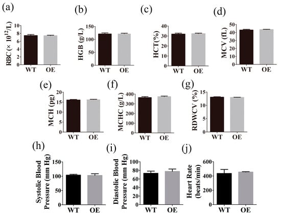 2.4. FtMt Overexpressing Mice Exhibit Normal Hematological Parameters and Blood Pressure