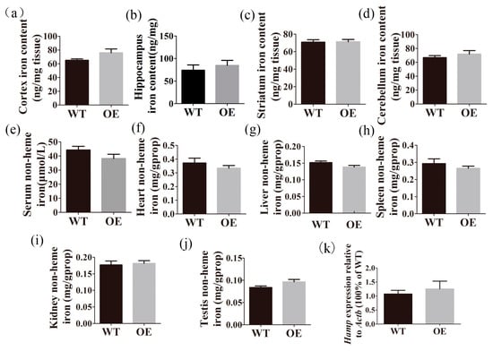 2.5. Transgenic Mice Have Normal Iron Distribution