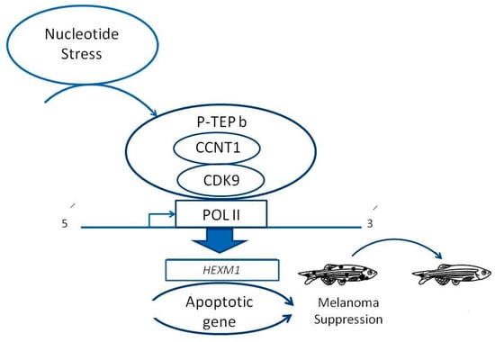 - Tan, J.L.; Fogley, R.D.; Flynn, R.A.; Ablain, J.; Yang, S.; Saint-Andre, V.; Fan, Z.P.; Do, B.T.; Laga, A.C.; Fujinaga, K.; et al. Stress from Nucleotide Depletion Activates the Transcriptional Regulator HEXIM1 to Suppress Melanoma. Mol. Cell 2013, 62, 34–46. [Google Scholar] [CrossRef] [PubMed]