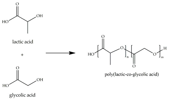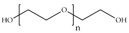 Poly(ethylene glycol) (PEG) is formed by the polymerization of ethylene oxide and corresponds to a neutral polyether (Figure 8). This hydrophilic polymer is especially relevant in the biomedical field because of its nontoxicity in the human body. In aqueous solution, PEG presents high mobility with a large exclusion volume; it also has a great capacity for water uptake, which depends on its molecular weight (Mw). This polymer has been extensively used, as a blend or as a copolymer, to improve the biocompatibility and water solubility of other polymers with little chemical modification [49]. In tissue engineering, PEG has been used to form hydrogels, mostly in diblock, triblock, and multiblock copolymers with poly(lactic-co-glycolic acid) (PLGA) to improve the degradability of the PEG hydrogels [50]. In drug delivery systems, PEG is used as a stabilizer by coupling it to proteins, polypeptides, DNA, RNA, among others [51]. PEG has also been utilized as a coating for biosensors, especially those applied for blood glucose sampling and monitoring for their anti-fouling properties [52,53]. Some relevant PEGylated products include those for severe combined immunodeficiency and (Adagen®, Gaithersburg, MD, USA) acute lymphoblastic leukemia (Oncospar®, St. Helier, Jersey) [54]. Recent PEGylated products include therapy for age-related macular degeneration (Macugen®, New York City, NY, USA) and for Crohn’s disease and rheumatoid arthritis (Cimzia®, Smyrna, GA, USA) [51].