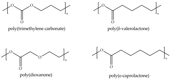 - Hong, J.-T.; Cho, N.-S.; Yoon, H.-S.; Kim, T.-H.; Koh, M.-S.; Kim, W.-G. Biodegradable studies of poly(trimethylenecarbonate-ɛ-caprolactone)-block-poly(p-dioxanone), poly(dioxanone), and poly(glycolide-ɛ-caprolactone) (Monocryl®) monofilaments. J. Appl. Polym. Sci. 2006, 102, 737–743. [Google Scholar] [CrossRef]