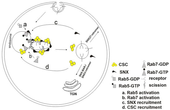 - Chi, R.J.; Harrison, M.S.; Burd, C.G. Biogenesis of endosome-derived transport carriers. Cell. Mol. Life Sci. 2015, 72, 3441–3455. [Google Scholar] [CrossRef] [PubMed]