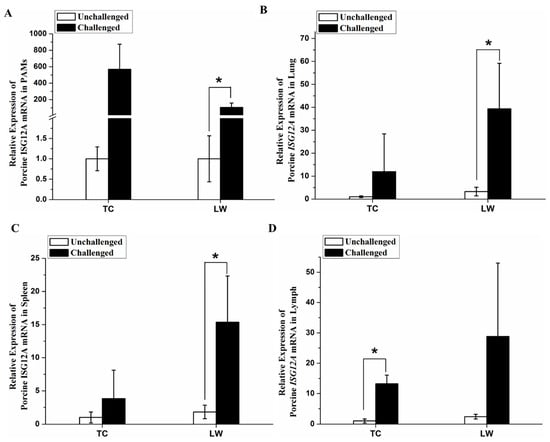 2.3. Increased Expression of Porcine ISG12A after PRRSV Challenge In Vivo