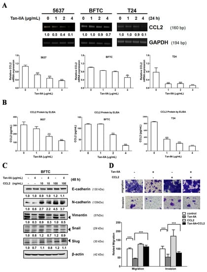 2.3. Tan-IIA Inhibits EMT via Down-Regulated CCL2 Expression in Human BCa Cells