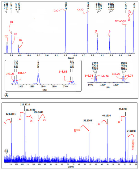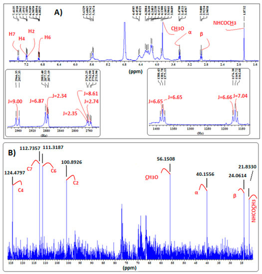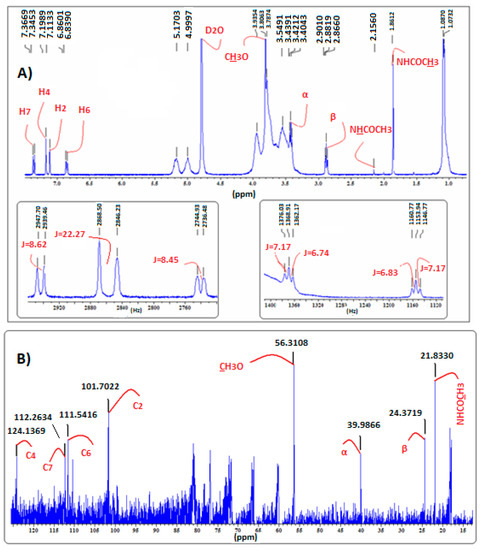 2.4. Confirmation of MLT Complex Formation via NMR Spectroscopy