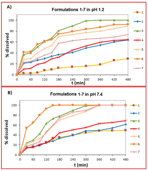 3.5. Materials Used for the Preparation of Matrix Tablets