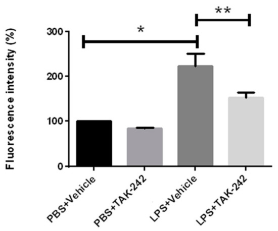 - Matsunaga, N.; Tsuchimori, N.; Matsumoto, T.; Li, M. TAK-242 (Resatorvid), a small-molecule Inhibitor of toll-like receptor (TLR) 4 signaling, binds selectively to TLR4 and interferes with interactions between TLR4 and its adaptor molecules. Mol. Pharmacol. 2011, 79, 34–41. [Google Scholar] [CrossRef] [PubMed]