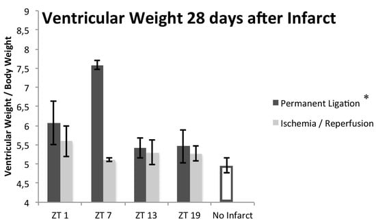 myocardial infarction; circadian; 24-h; rhythm; permanent ligation; reperfusion; reperfusion damage; infarct 1. Introduction