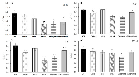 2.2. The Anti-Inflammatory Effects of KM and FA Work on Inflamed HCECs