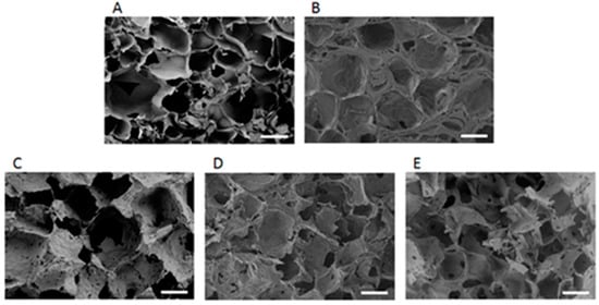 - Ji, C.; Annabi, N.; Khademhosseini, A.; Dehghani, F. Fabrication of porous chitosan scaffolds for soft tissue engineering using dense gas CO2. Acta Biomater. 2011, 7, 1653–1664. [Google Scholar] [CrossRef] [PubMed]