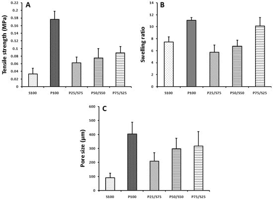 2.2. Mechanical Properties, Swelling Ratio, and Pore Size