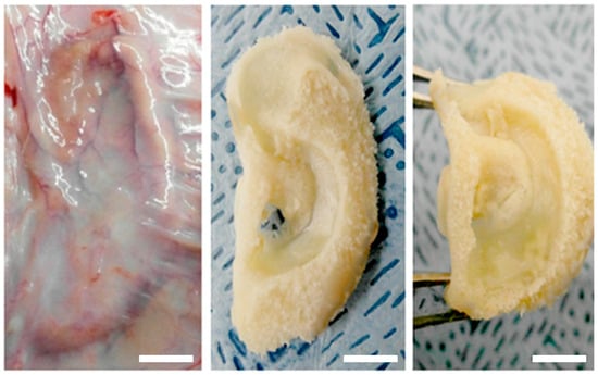 - Liu, Y.; Zhang, L.; Zhou, G.; Li, Q.; Liu, W.; Yu, Z.; Luo, X.; Jiang, T.; Zhang, W.; Cao, Y. In vitro engineering of human ear-shaped cartilage assisted with CAD/CAM technology. Biomaterials 2010, 31, 2176–2183. [Google Scholar] [CrossRef] [PubMed]