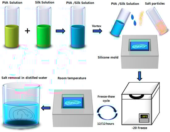 - Neo, P.Y.; Shi, P.; Goh, J.C.; Toh, S.L. Characterization and mechanical performance study of silk/PVA cryogels: Towards nucleus pulposus tissue engineering. Biomed. Mater. 2014, 9, 065002. [Google Scholar] [CrossRef] [PubMed]