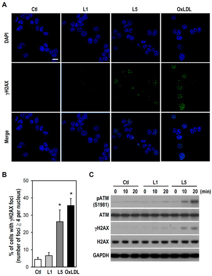 2.2. L5 Induces Genotoxicity via ATM/H2AX Activation in PC12 Cells