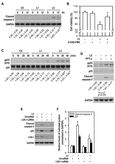 2.3. L5 Induces Apoptotic Death of PC12 Cells via the LOX-1/p53/Caspase-3 Pathway