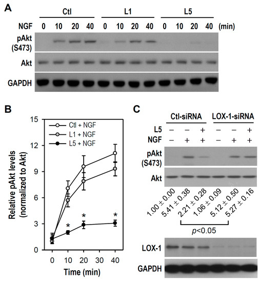 2.6. LOX-1 Is Required for L5 Suppression of NGF-Induced Akt Phosphorylation
