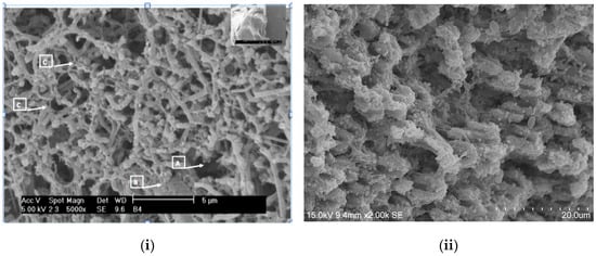 Scanning electron microscopic images of (i) Clostridium botulinum and Streptococcus anginosus (5000×). Communication channels inside the biofilm (A), fusion of extracellular fibers in laminar shape (B) and the presence of numerous polymeric fibers secreted by rods and cocci forming a crisscross pattern (C) are evident. (Courtesy: Dr. Ana Maria González Amaro, Maria Verónica Méndez González, UASLP Mexico); (ii) 3 weeks biofilm of Enterococcus fecalis on dentin (2000×). The dense EPS matrix is visible and the challenge in eradicating biofilms of this microbe is, in part, attributed to the ability of medicaments to penetrate this matrix. This is the most commonly implicated bacterium in root canal treatment failure.