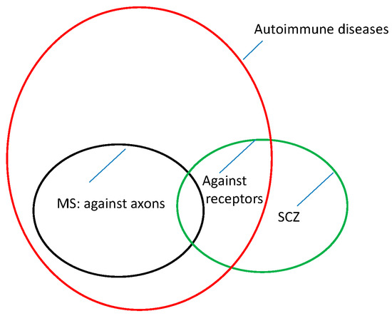Subgroups of MS and SCZ may belong to the same class of disorders due to similarities in the age of onset, geographical distribution and immunological response of patients with the diseases [1]. MS is defined as a chronic disease that affects the central nervous system [4], whereas SCZ is defined as a primarily psychiatric disease [5,6]. These diseases have both been extensively investigated as a result of the increased interest they have attracted in the scientific realm. From this perspective, the purpose of this review is to discuss the similarities and differences between MS and SCZ.