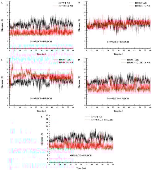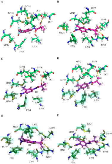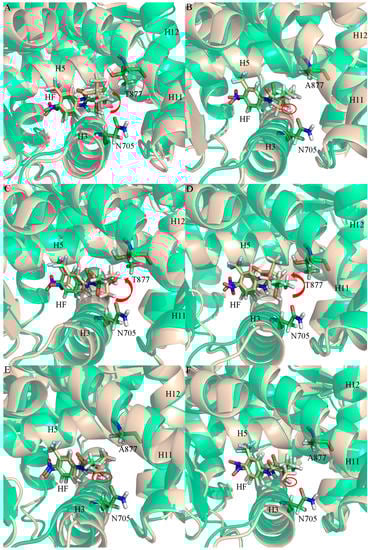 2.4. The Binding Modes of HF with W741C_T877A/F876L_T877A