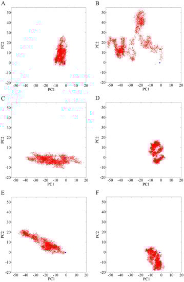 - Ichiye, T.; Karplus, M. Collective motions in proteins: A covariance analysis of atomic fluctuations in molicular dynamics and normal mode simulations. Proteins 1991, 11, 205–217. [Google Scholar] [CrossRef] [PubMed]