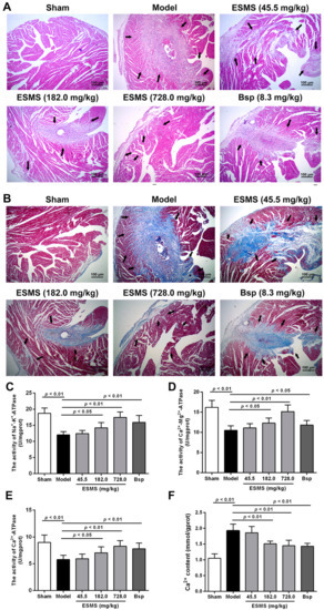 2.3. ESMS Increased ATPase Activity and Reduced Intracellular Ca2+ Concentration in MI-Induced HF Mice