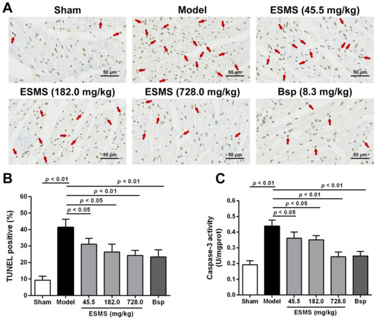 2.4. ESMS Inhibited Myocardial Apoptosis in MI-Induced HF Mice