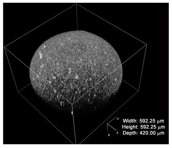 Fibroin coating reconstruction by confocal microscopy of fibroin-coated alginate microcarriers (FAMs).