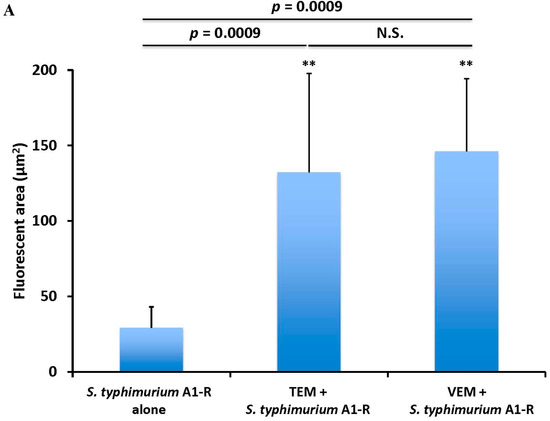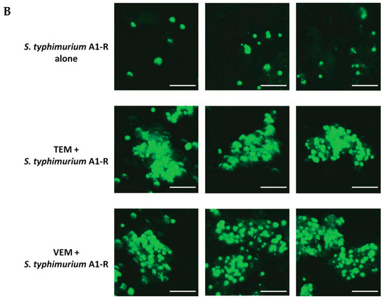 The FV1000 confocal microscope (Olympus, Tokyo, Japan) was used for high-resolution imaging of S. typhimurium A1-R. Fluorescence images were obtained using the 20×/0.50 UPLAN FLN and 40×/1.3 Oil Olympus UPLAN FLN objectives [80].