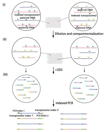 - Amini, S.; Pushkarev, D.; Christiansen, L.; Kostem, E.; Royce, T.; Turk, C.; Pignatelli, N.; Adey, A.; Kitzman, J.O.; Vijayan, K.; et al. Haplotype-resolved whole-genome sequencing by contiguity-preserving transposition and combinatorial indexing. Nat. Genet. 2014, 46, 1343. [Google Scholar] [CrossRef] [PubMed]