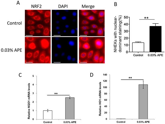 2.1. APE Upregulated Antioxidant NRF2/NQO1 Pathway in Normal Human Epidermal Keratinocytes