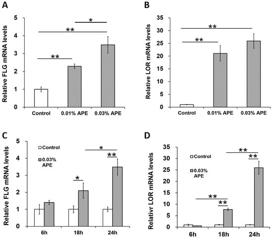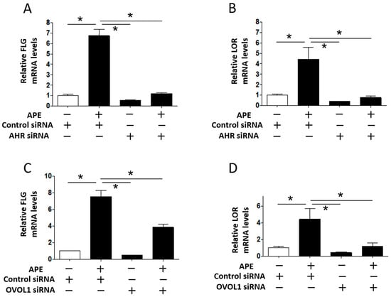 2.3. APE Induced FLG and LOR Gene Upregulation in an AHR/OVOL1-Dependent Manner