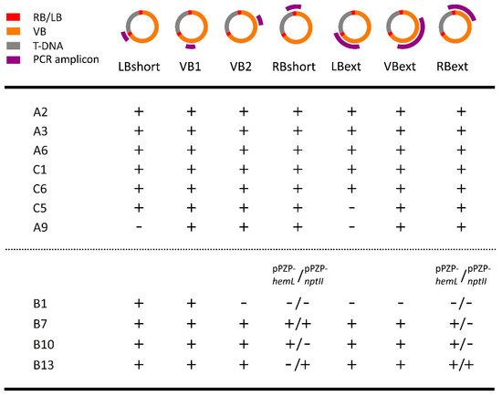 | B | 13 | LBA4404 | pPZP-hemL + pZPZ-nptII | 8 (61.5%) | 4 (30.4%) |