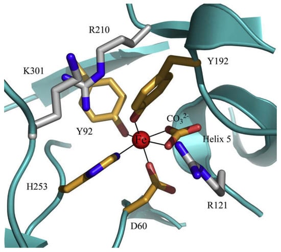 - Bruns, C.M.; Nowalk, A.J.; Arvai, A.S.; McTigue, M.A.; Vaughan, K.G.; Mietzner, T.A.; McRee, D.E. Structure of Haemophilus influenzae Fe(+3)-binding protein reveals convergent evolution within a superfamily. Nat. Struct. Biol. 1997, 4, 919–924. [Google Scholar] [CrossRef] [PubMed]