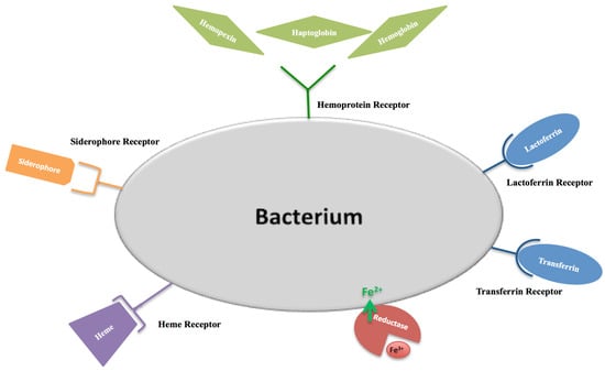 - Pogoutse, A.K.; Moraes, T.F. Iron acquisition through the bacterial transferrin receptor. Crit. Rev. Biochem. Mol. Biol. 2017, 52, 314–326. [Google Scholar] [CrossRef] [PubMed]