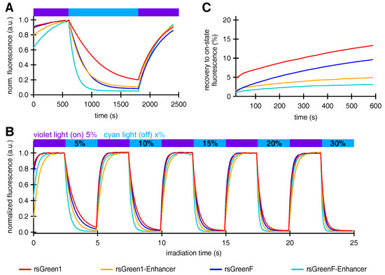 2.3. Effect of Enhancer on rsGreen Throughout Multiple Switching Cycles