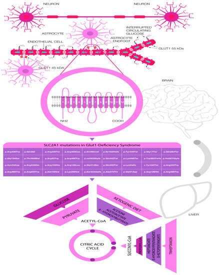 Disorder of glucose transport (GLUT1-DS) across the blood–brain barrier and its availability in the brain (astrocytes and neurons respectively) caused by the variety of mutations in the SLC2A1, genetic testing of pathogenic variants, and therapeutic approaches with alternative energy sources.