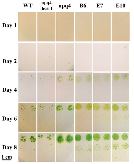 - Cantrell, M.; Peers, G. A mutant of Chlamydomonas without LHCSR maintains high rates of photosynthesis, but has reduced cell division rates in sinusoidal light conditions. PLoS ONE 2017, 12, e0179395. [Google Scholar] [CrossRef] [PubMed]