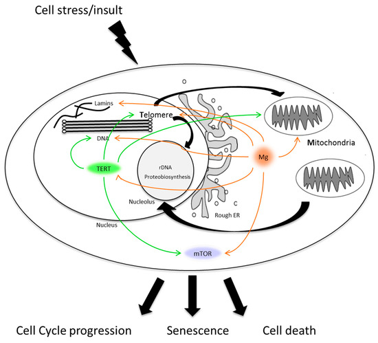 - Killilea, D.W.; Ames, B.N. Magnesium deficiency accelerates cellular senescence in cultured human fibroblasts. Proc. Natl. Acad. Sci. USA 2008, 105, 5768–5773. [Google Scholar] [CrossRef] [PubMed]