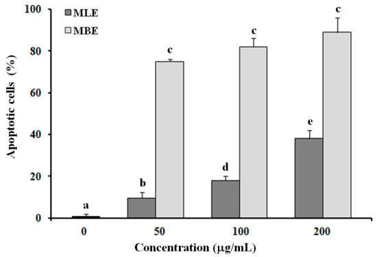 2.5. Evaluation of Apoptosis in HepG2 Cells Treated with MLE and MBE
