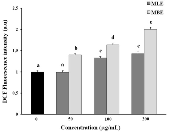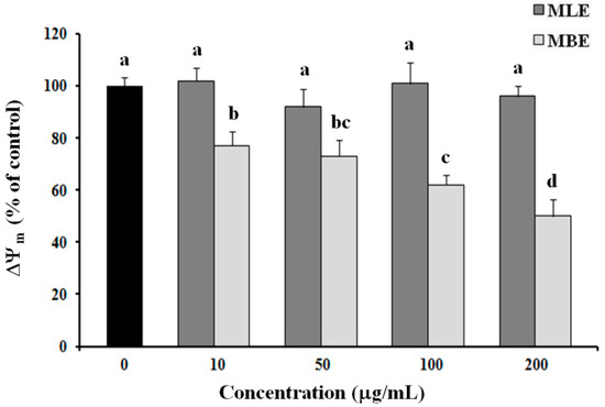 2.6. Effects of MLE and MBE on Both ROS Production and Mitochondrial Membrane Potential (ΔΨm)