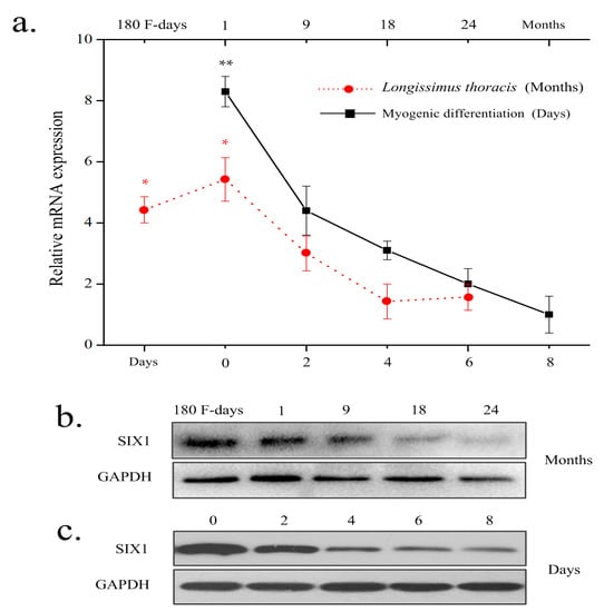 - Grand, F.L.; Grifone, R.; Mourikis, P.; Houbron, C.; Gigaud, C.; Pujol, J.; Marjorie, M.; Gilles, P.; Michael, R.; Shahragim, T.; et al. SIX1 regulates stem cell repair potential and self-renewal during skeletal muscle regeneration. J. Cell Biol. 2012, 198, 815–832. [Google Scholar] [CrossRef] [PubMed]