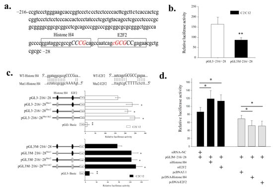 2.4. Histone H4 and E2F2 Bind to the SIX1 Promoter In Vitro and Vivo