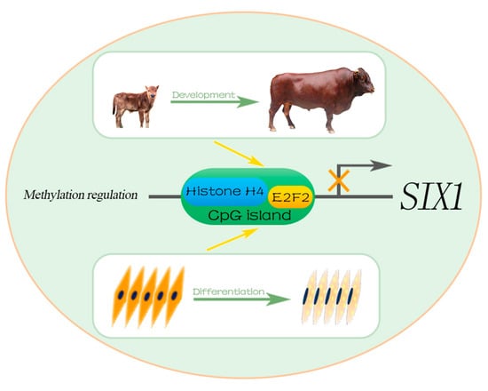 Wei, D.; Li, A.; Zhao, C.; Wang, H.; Mei, C.; Khan, R.; Zan, L. Transcriptional Regulation by CpG Sites Methylation in the Core Promoter Region of the Bovine SIX1 Gene: Roles of Histone H4 and E2F2. Int. J. Mol. Sci. 2018, 19, 213. https://doi.org/10.3390/ijms19010213