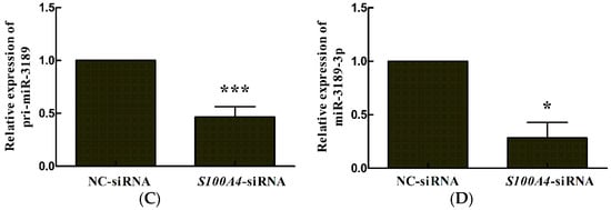 2.1. S100A4 Knockdown Leads to Decreased Expression of miR-3189-3p in MGC803 Cells