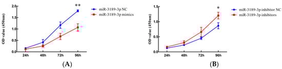 2.2. miR-3189-3p Inhibits the Proliferation of MGC803 Cells