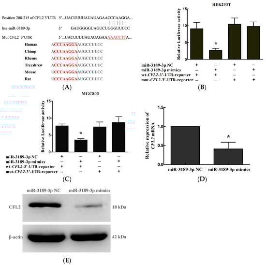 2.5. CFL2 Is a Direct Target Gene of miR-3189-3p in MGC803 Cells